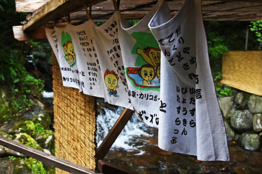 のれんにある「カリコボーズ」は 西米良村に伝承されている精霊。その「ホイホイ」と鳴く声が、狩りをするとき鳥獣を駆り立てる 狩子(かりこ)に似ていることからそう呼ばれるようになったそうです。 |