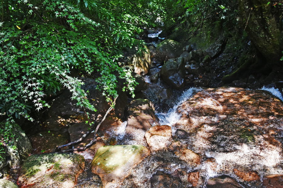 そんな西米良村の 中央を北西から南東に流れる清流・一ツ瀬川に滝のように そそぎ込む小川に、川床が設えられています。 |